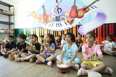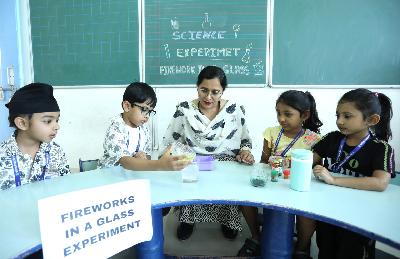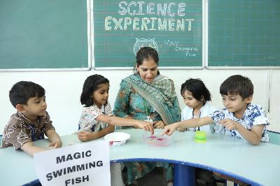 The students of grade Nursery had a wonderful time dancing to energetic Zumba beats while enthusiastically using colourful pom-poms. They also explored different musical instruments, learned their names and discovered how they are played, adding a joyful musical element to their day. The students of grade Pre-Nursery enjoyed refreshing water play in baby pools, engaging with balls, bath books and other water play materials. Meanwhile, the students of grade Preparatory participated in fascinating experiments such as Colour Storm, Magic Flowers, Lemon Volcano, Fireworks in a Glass and Magic Swimming Fish, which encouraged curiosity, observation and hands-on learning. Overall, the day was a perfect blend of fun, creativity and exploration, leaving the students with happy memories and enriching learning experiences.