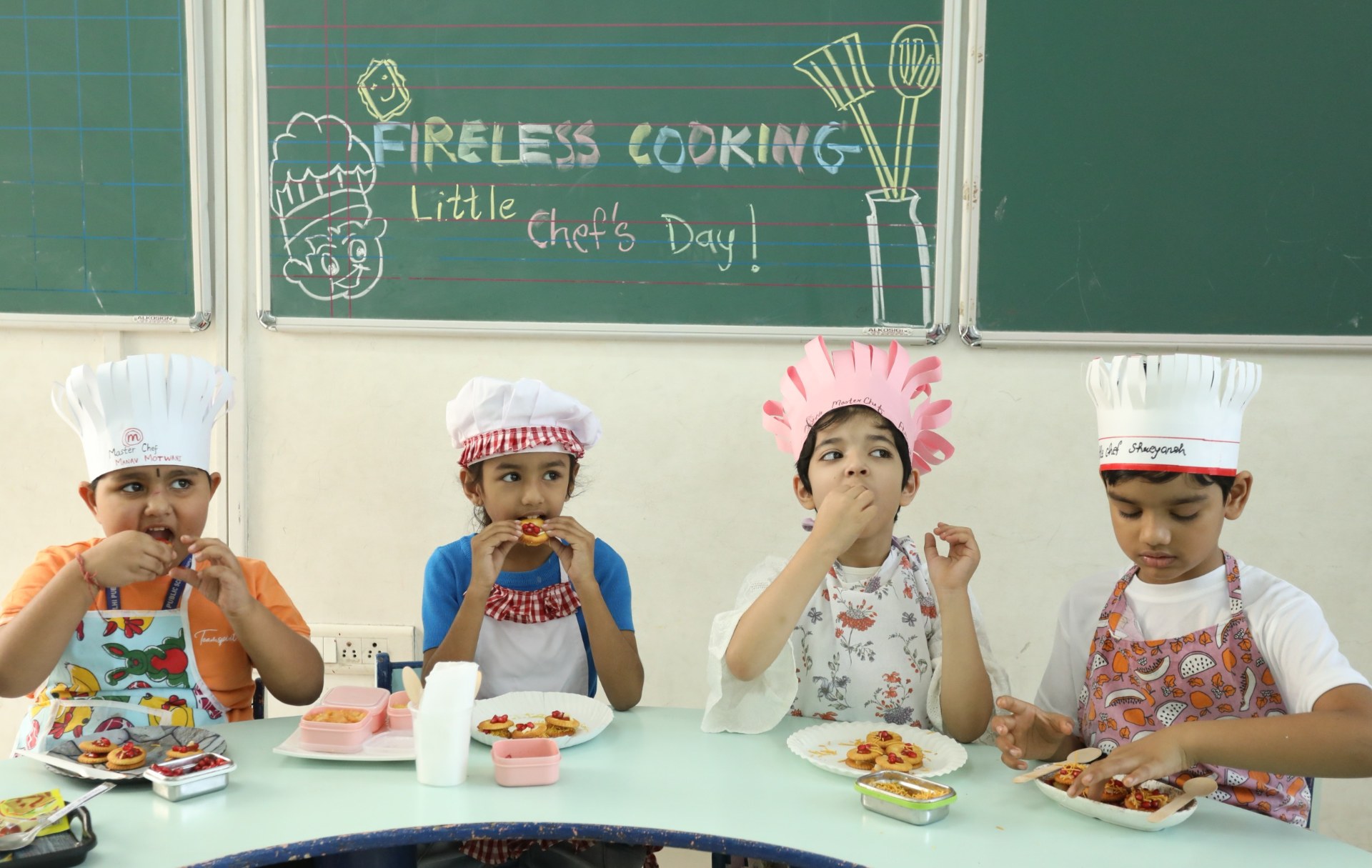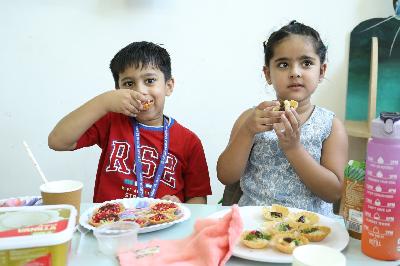 The students of grade Pre-Nursery enthusiastically prepared colourful and vibrant fruit salad. They thoroughly enjoyed the process and happily relished the delicious treats they created.