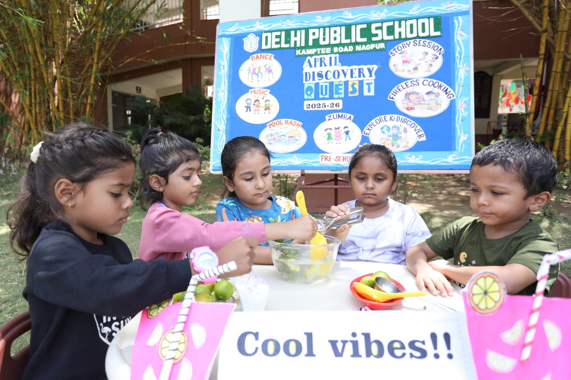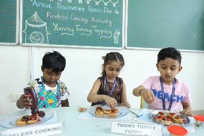 On the fourth day of the April Discovery Quest at DPS Kamptee Road, Nagpur the students of grade Pre-school experienced a day filled with excitement and meaningful learning activities. The highlight of the day was a wonderful life skill activity, fireless cooking, conducted under the careful guidance of the teachers.