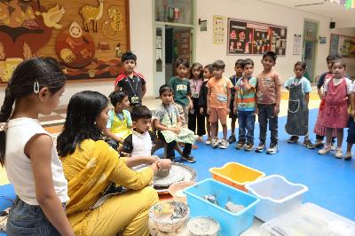 In addition to cooking, the students of grade Preparatory explored the art of pottery. With the guidance of their teachers, they learnt to mould and shape clay, enhancing their creativity and fine motor skills. Overall, the day was a perfect blend of fun, learning and hands-on experiences, leaving the students with joyful memories and valuable life skills.