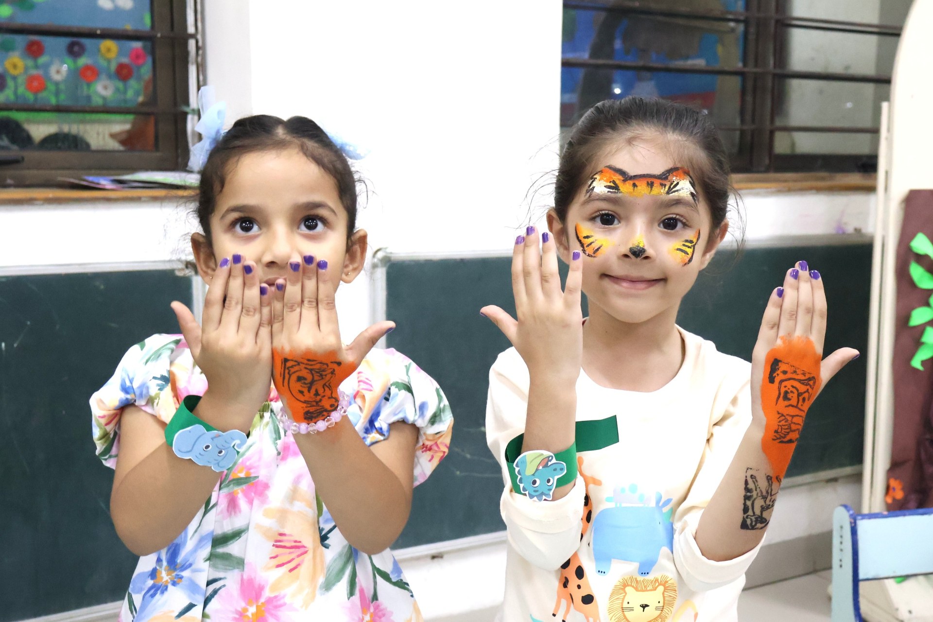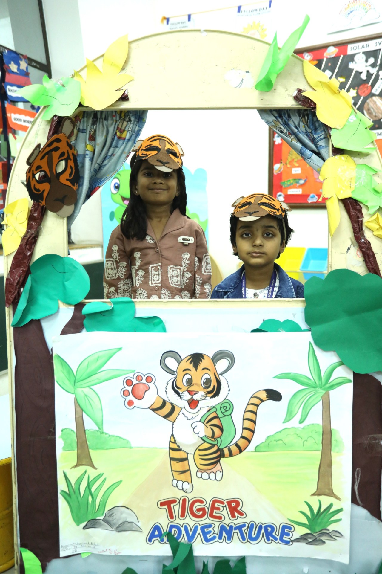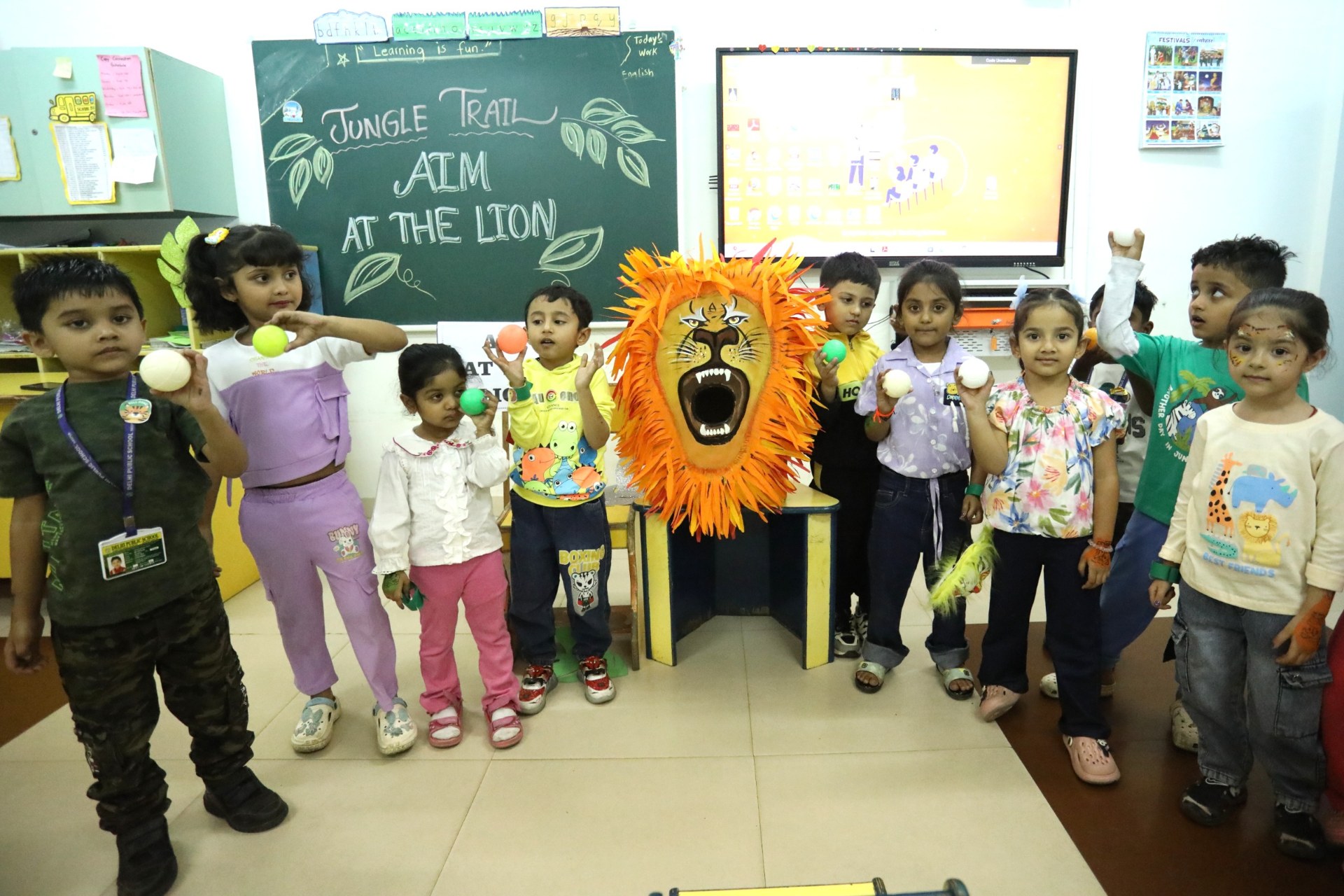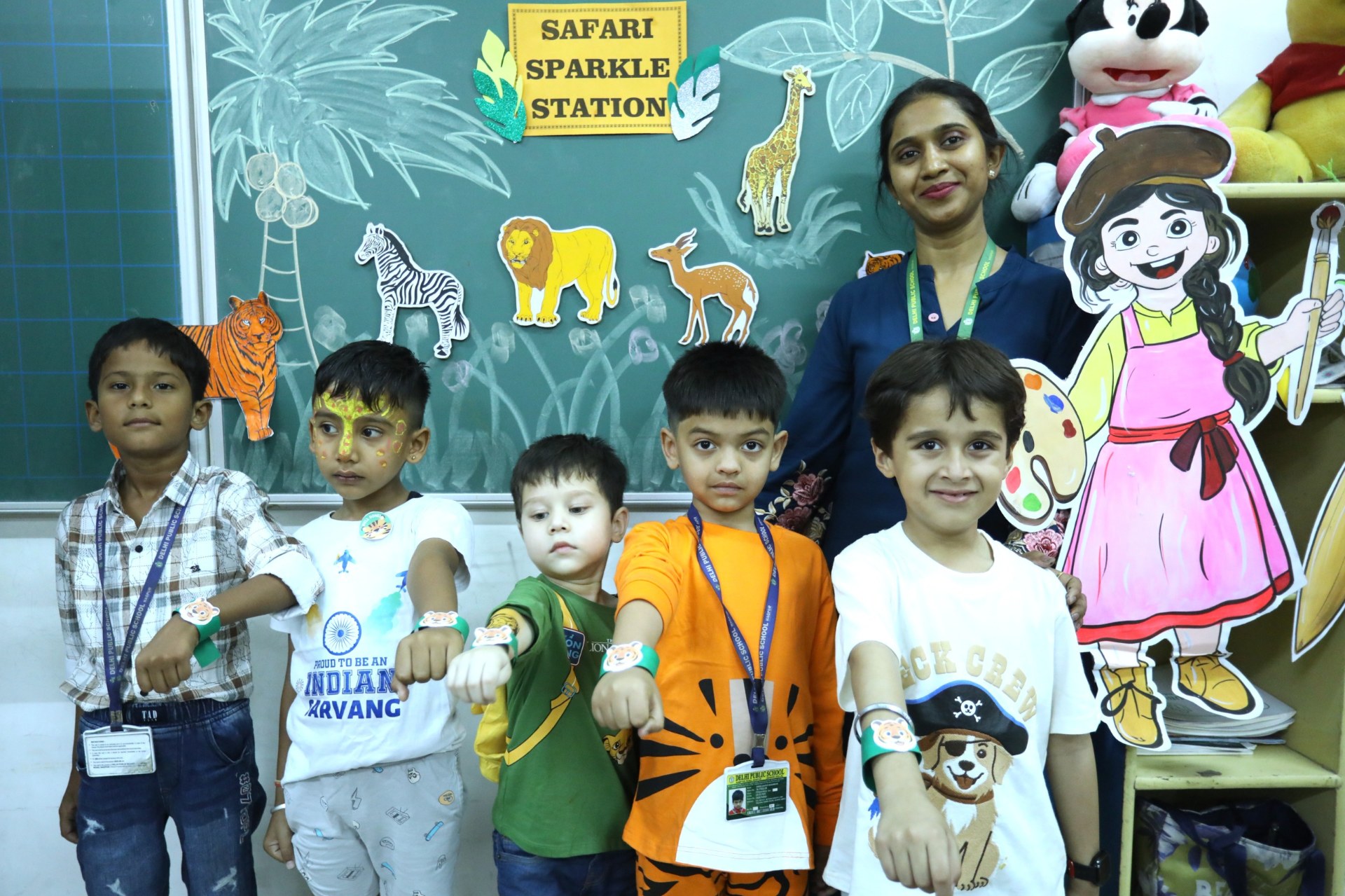The campus was beautifully transformed into a vibrant jungle setting with green drapes, trees, animal cut-outs, jungle sound effects and soft lighting that created a magical forest ambience. The students were thrilled to see their school turn into a lively jungle and many arrived dressed as explorers and forest animals, which added to the excitement. The evening began with a warm welcome by the teachers followed by engaging activities such as Aim at the Lion, Crossing the River Challenge, hand band and tattoo making, puzzle solving, jungle expedition, shadow play and star gazing along with an energetic DJ session and bonfire.