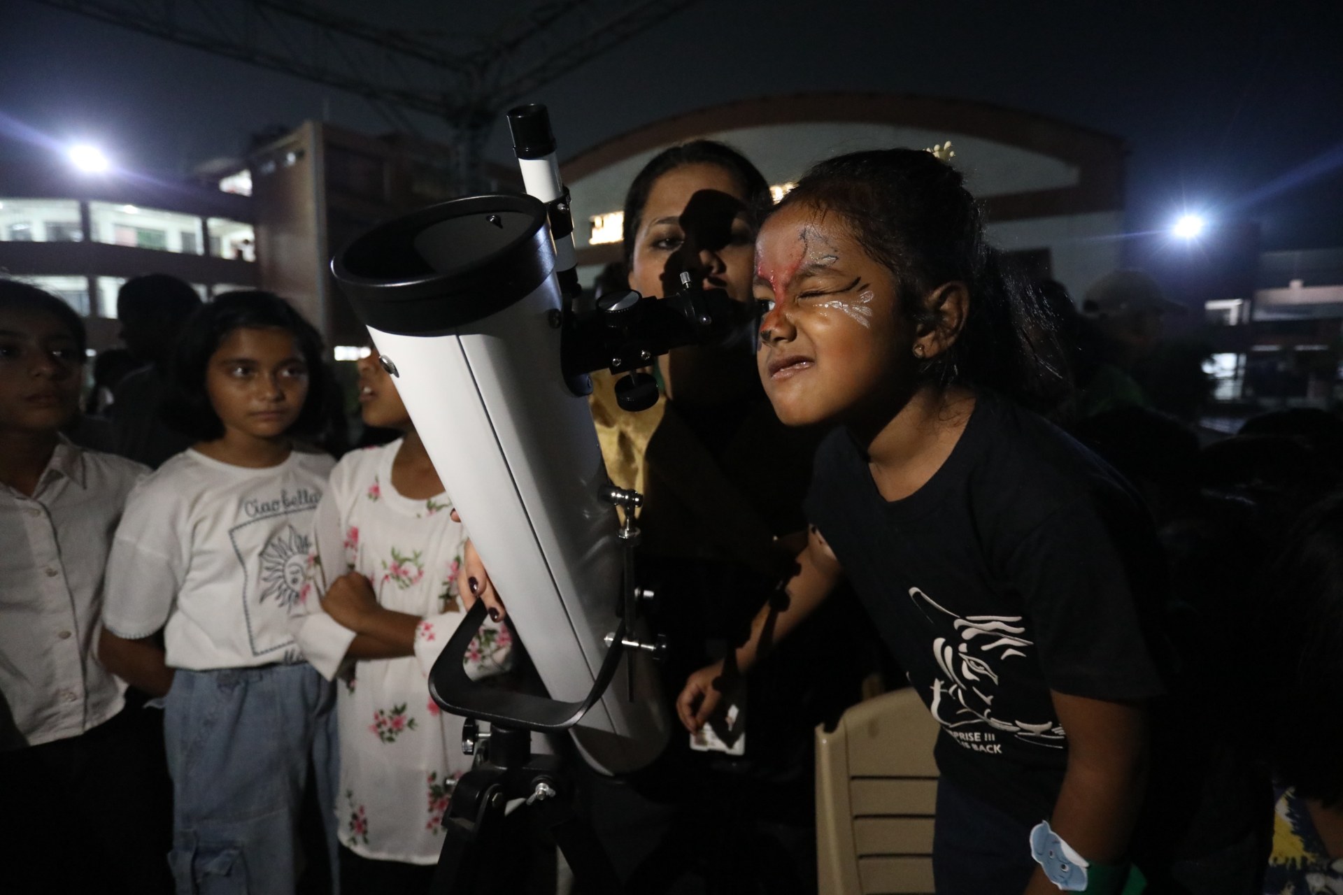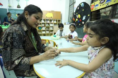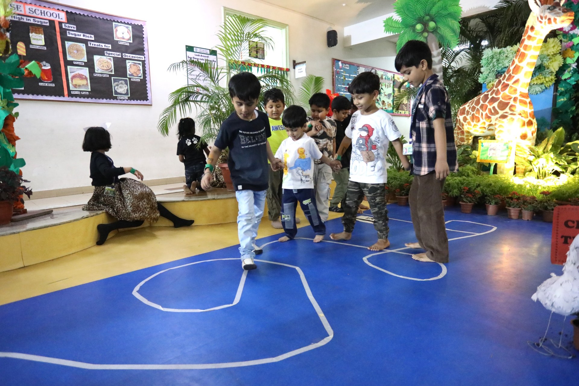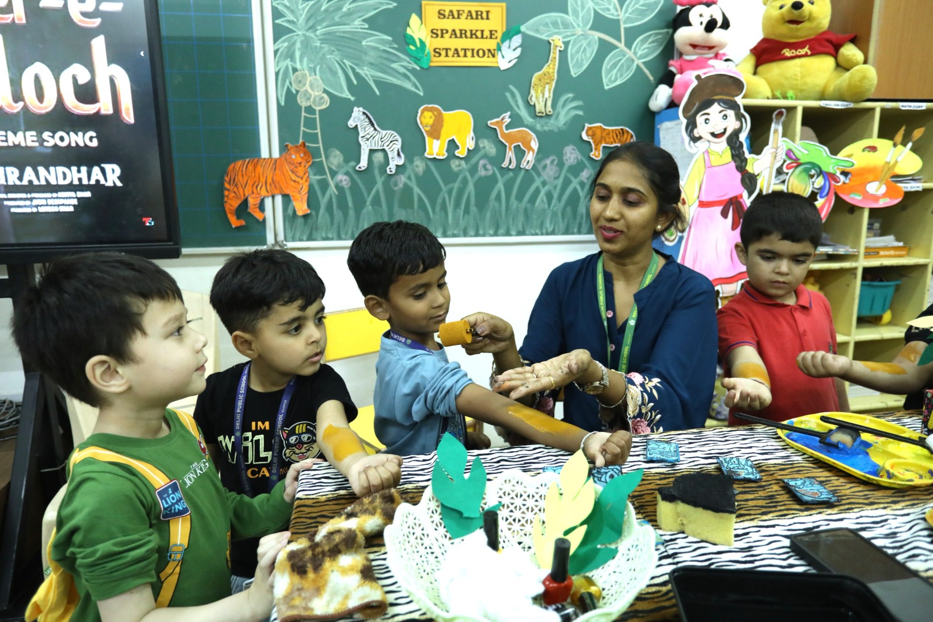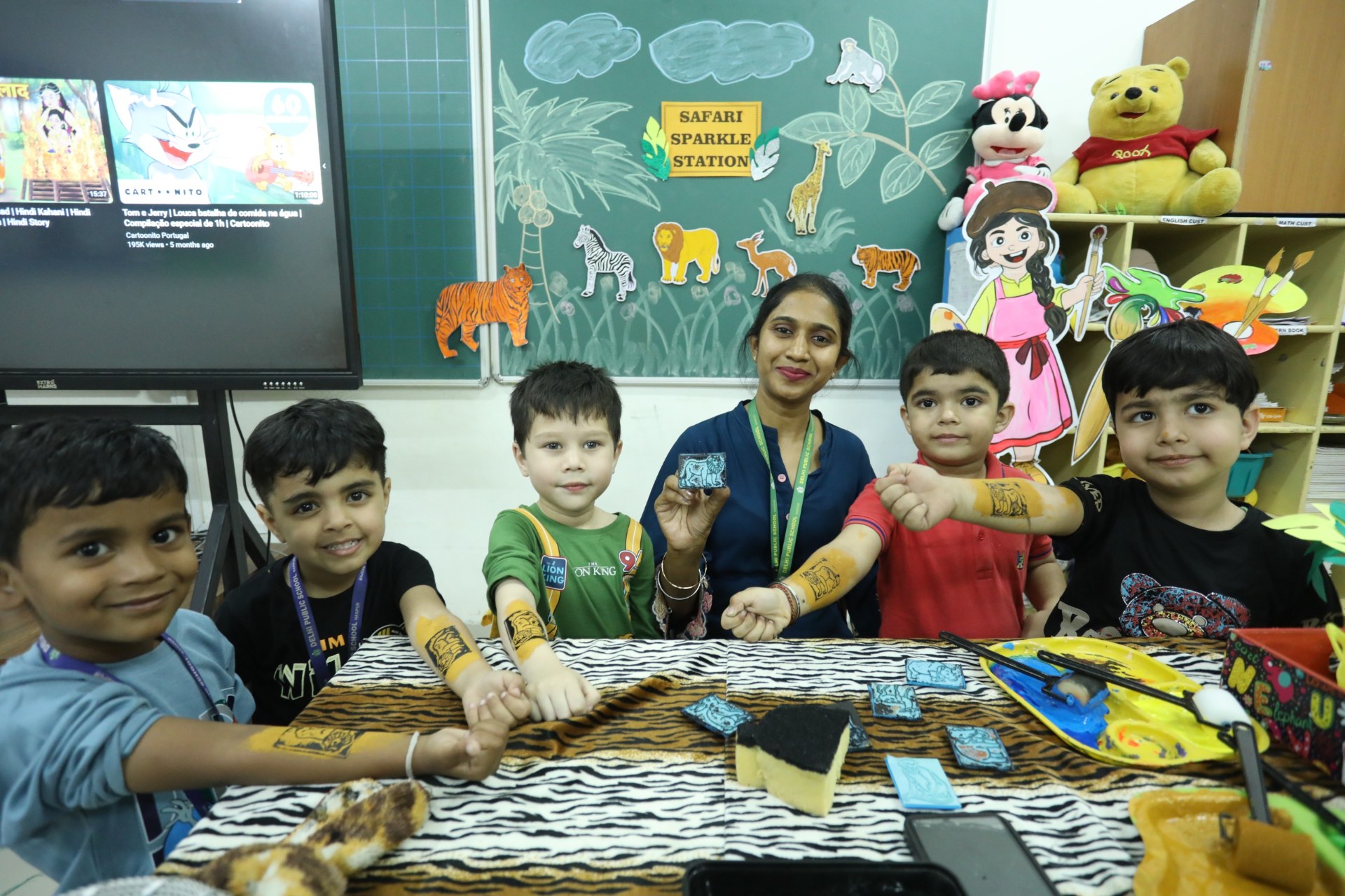 The campus was beautifully transformed into a vibrant jungle setting with green drapes, trees, animal cut-outs, jungle sound effects and soft lighting that created a magical forest ambience. The students were thrilled to see their school turn into a lively jungle and many arrived dressed as explorers and forest animals, which added to the excitement. The evening began with a warm welcome by the teachers followed by engaging activities such as Aim at the Lion, Crossing the River Challenge, hand band and tattoo making, puzzle solving, jungle expedition, shadow play and star gazing along with an energetic DJ session and bonfire.